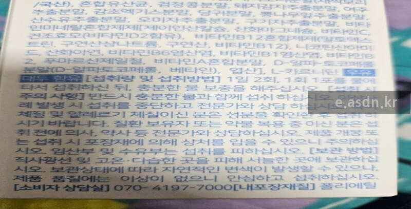 1일 2회,1회 1포를 물에 타서 섭취하고서 충분한 물을 보충해 주세요.