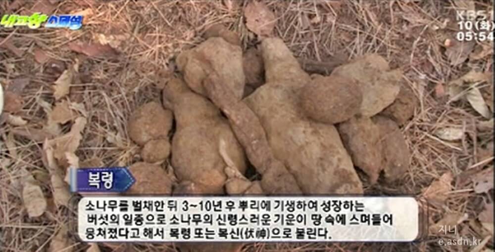 복령은 소나무를 벌채한 뒤 3년에서 10년 후 뿌리에 기생하여 성장하는 버섯의 일조으로 소나무의 신령스러운 기운이 땅속에 스며들어 뭉쳐졌다고 해서 복령 또는 복신으로 불리웁니다.