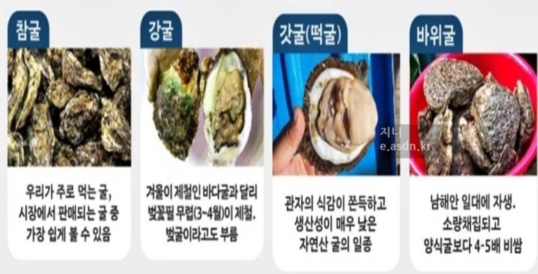 첫번째.참굴은 우리가 주로 먹는 굴로 시장에서 판매되는 굴 중에서 가장 쉽게 볼 수 있습니다.