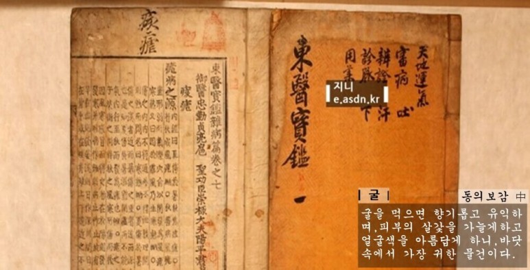 아홉번째 효능.동의보감에서는 굴을 먹으면 향기롭고 유익하며,피부의 살갗을 가늘게하고 얼굴색을 아름답게 하니,바닷